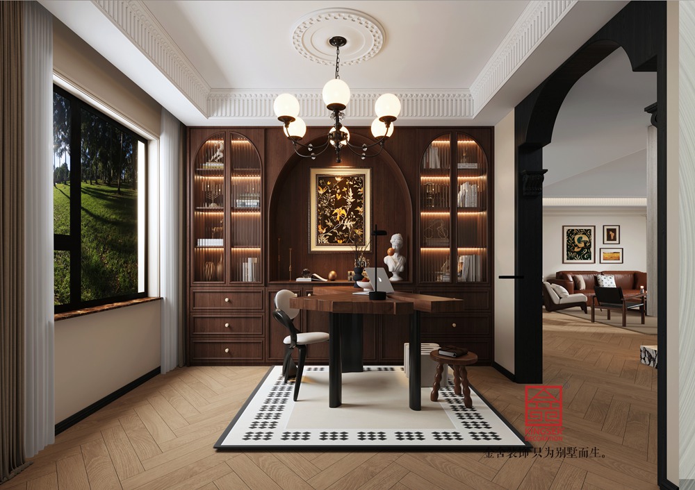 中海峯叁號院235平米復古美式風格裝修-書房